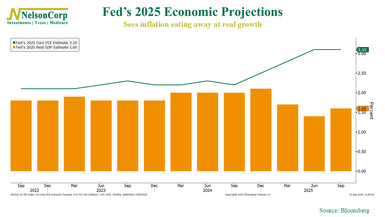 This week’s chart shows the Fed’s outlook for 2025. The bars track their estimate for real GDP, which they see slipping to just 1.6%. And the line shows core PCE inflation, which they expect to climb to 3.1%.