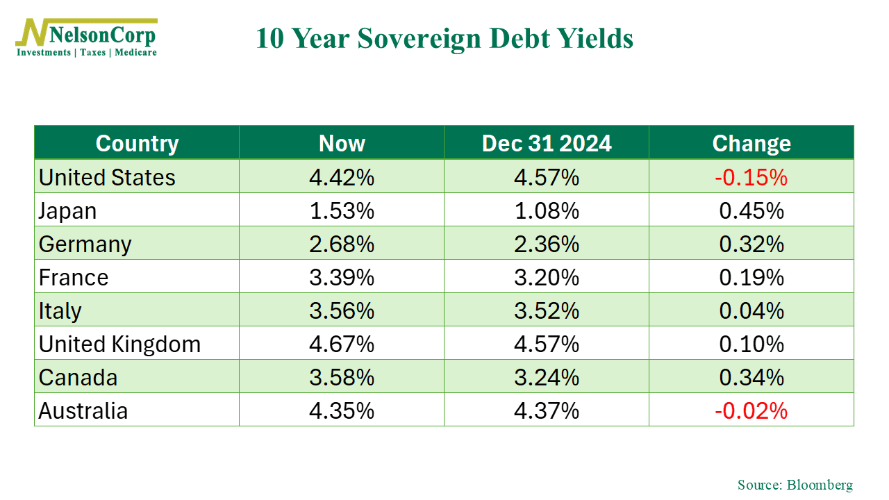 As our featured chart shows, while most developed economies have seen their 10-year sovereign debt yields rise in 2025, U.S. yields have actually moved lower—down about 15 basis points since December 31, 2024.