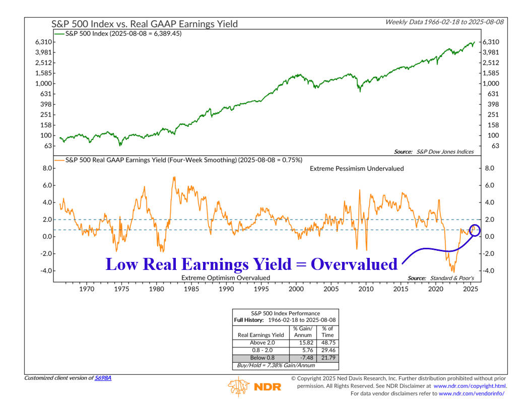 That’s where this week’s featured indicator comes into play. It measures something called the Real Earnings Yield. Specifically, it looks at how much companies in the S&P 500 are earning compared to their stock prices—and then subtracts inflation.