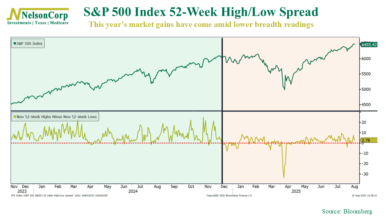 Can I Get a “Breadth” Mint? – All things considered, the stock market has done pretty well this year. If you had pulled a Rip Van Winkle on December 31, 2024—fallen asleep and woken up this week—you might think it’s been a pretty uneventful year in financial markets.