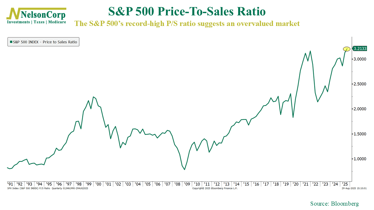Well, one way is by looking at the Price-to-Sales ratio. This measure compares the price of the S&P 500 to the revenue its companies generate. Analysts like it because, unlike earnings, revenues are harder to manipulate.