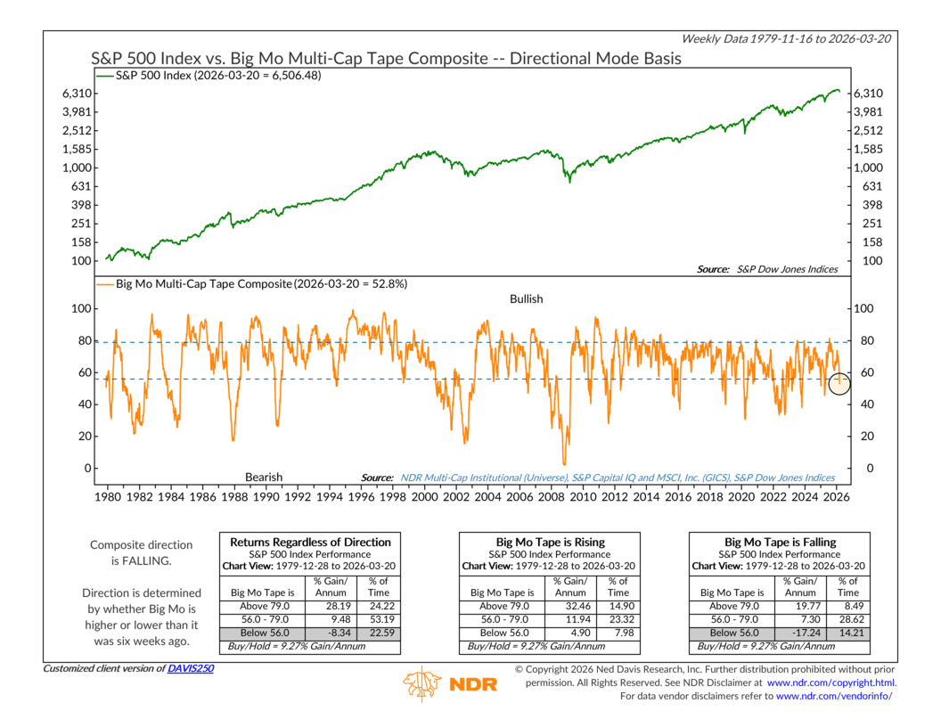 The indicator in focus this week is one we call the Big Mo Multi-Cap Tape Composite. In simple terms, it measures how many stocks across the market are trending in a positive direction. Think of it as a broad pulse check on how widely momentum is being sustained across the market.