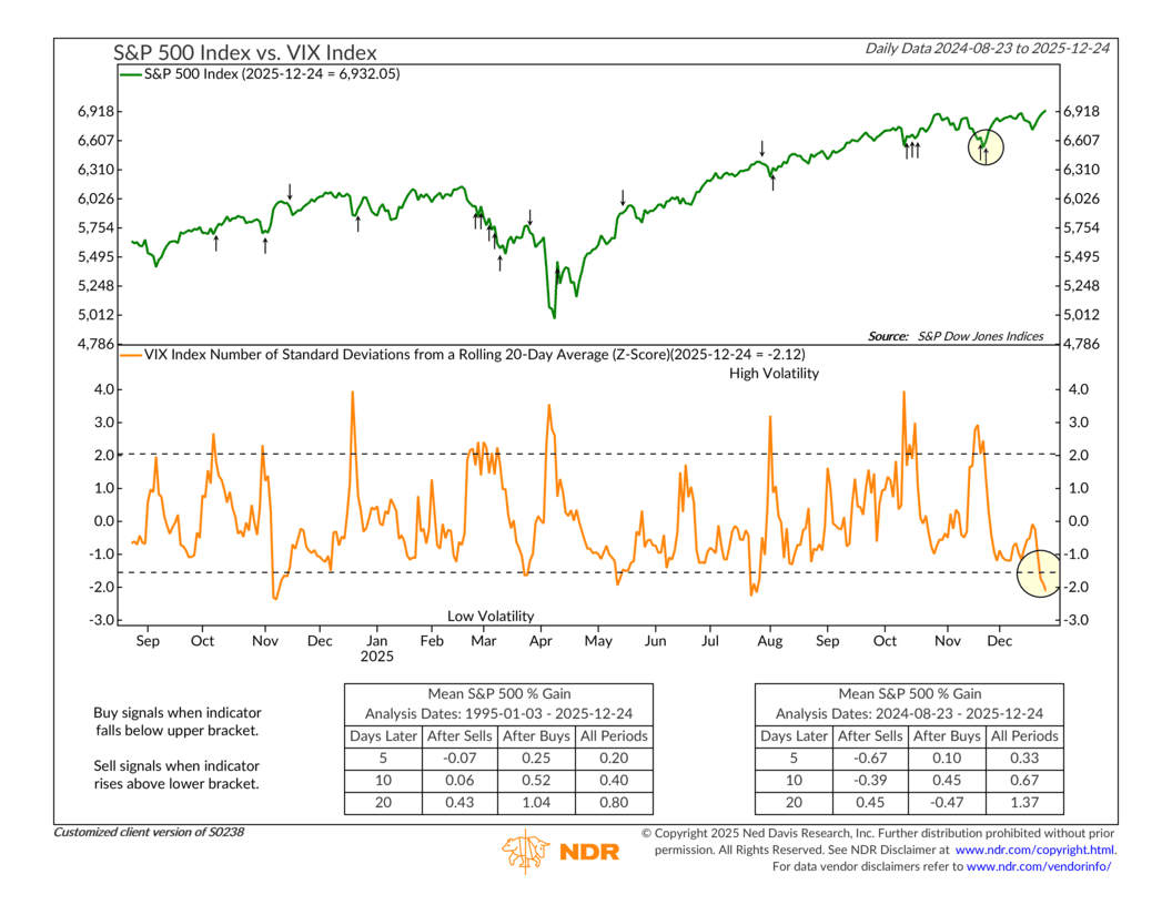 But with that said, not every part of the model is sending the same signal. Investor Behavior has been softer lately. One reason is the drop in volatility. When volatility compresses, some short-term bullish signals lose their effectiveness compared to a few weeks ago.