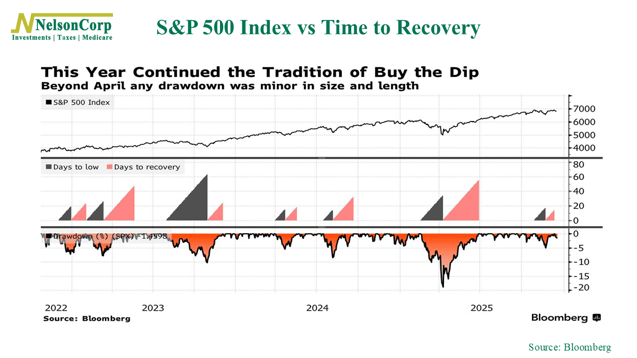 Rooted in Earnings– It’s been a pretty good year for the stock market. Sure, there’s been some volatility, particularly back in the spring, but for the most part, financial markets have performed nicely. In fact, aside from that big drawdown in April, it’s mostly been a “buy the dip” kind of year.